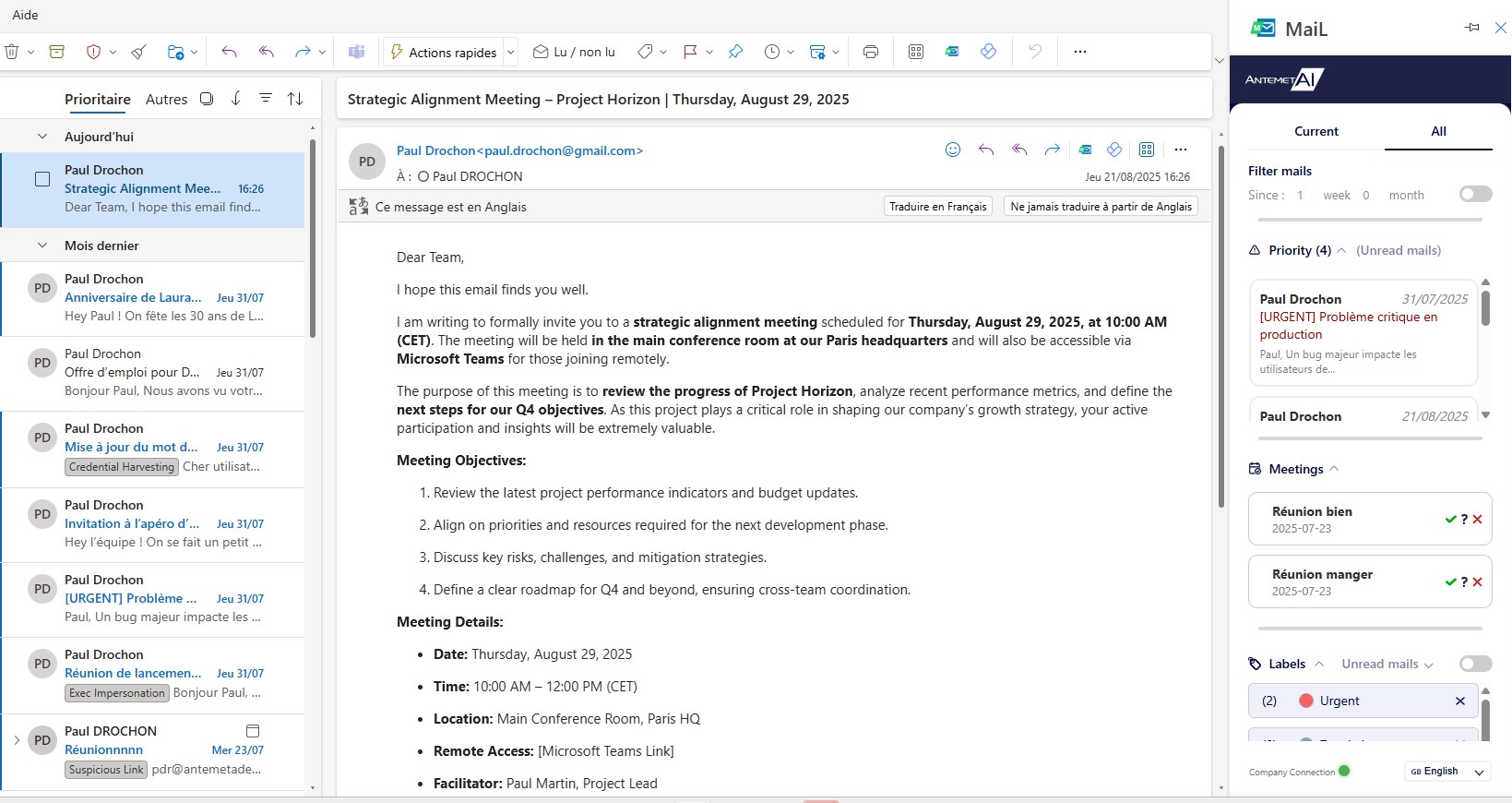 Microsoft Outlook add-in using sovereign AI to assist in managing and composing professional emails.